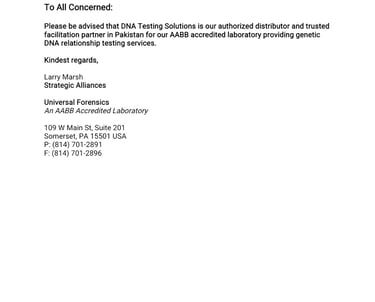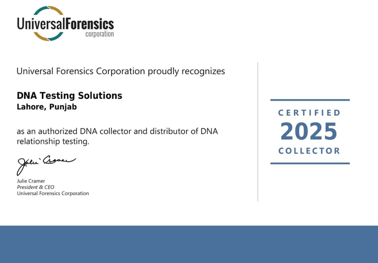 This certification reinforces our commitment to providing trustworthy, internationally accepted DNA testing services to clients across Pakistan and abroad.